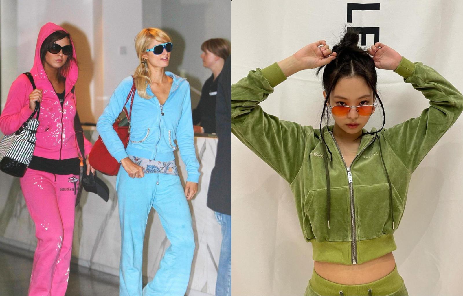 絨布運動套裝可以說是當時明星們的「機場時尚」和「超市時尚」,想要輕鬆但有型的出門只要穿著成套運動裝再加上小配件就可以是一個Look。Jennie身上著用的抹茶綠運動套裝便是來自韓國當地品牌Expired girl。Expired girl是韓國Y2K風格的代表品牌,也是Jennie、韓韶禧、Rapper李英智、歌手BIBI等眾明星的愛牌!