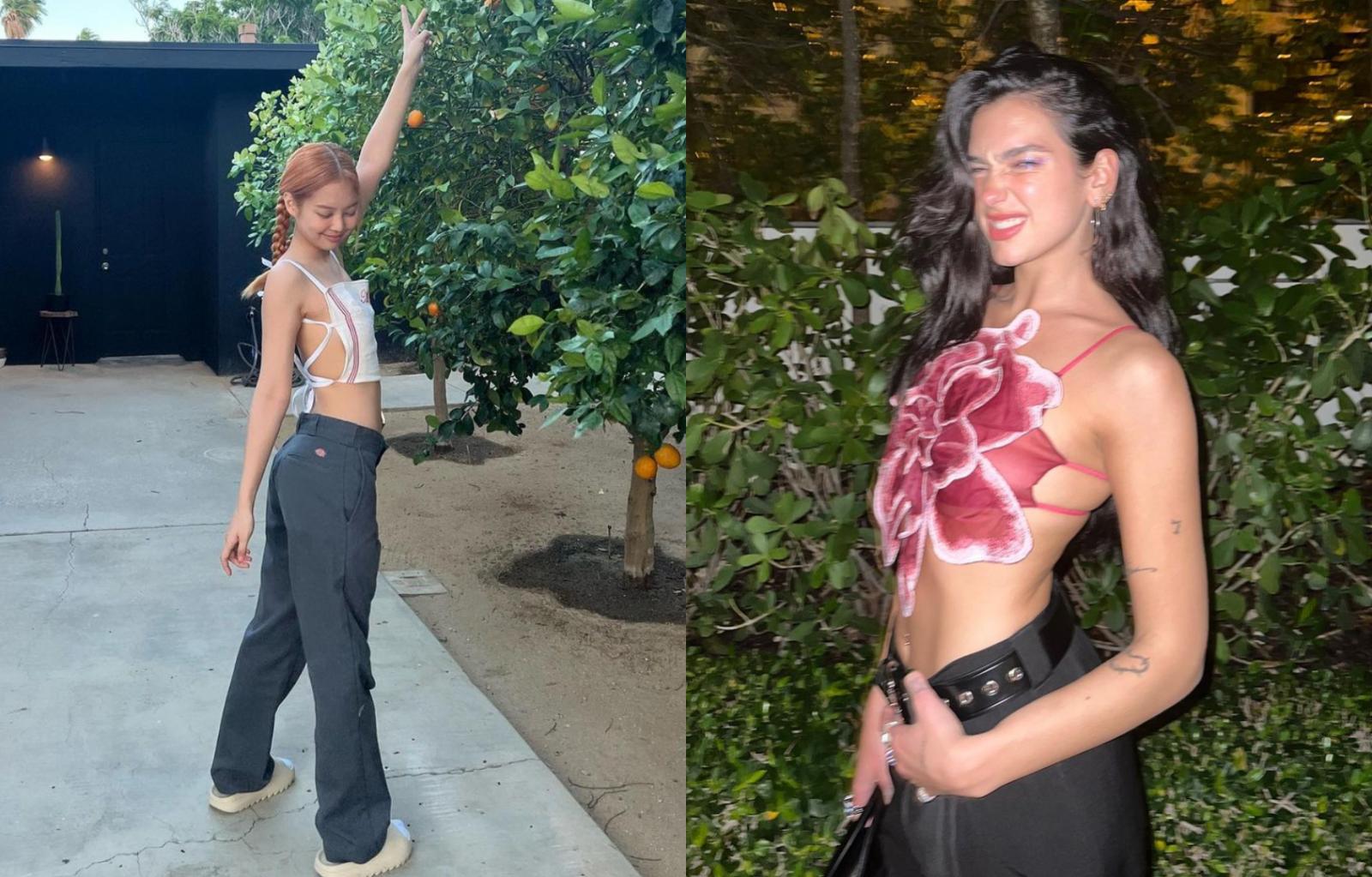 Jennie飛往美國參加Coachella音樂節的這件Marine Serre「茶巾圍裙上衣」引起了網上熱議,相信有在關注的人一定看過!2000年時流行加入綁帶元素,因此可以看到許多不同種類的綁帶單品,尤其是肚兜式的綁帶背心完整露出美背,超辣!