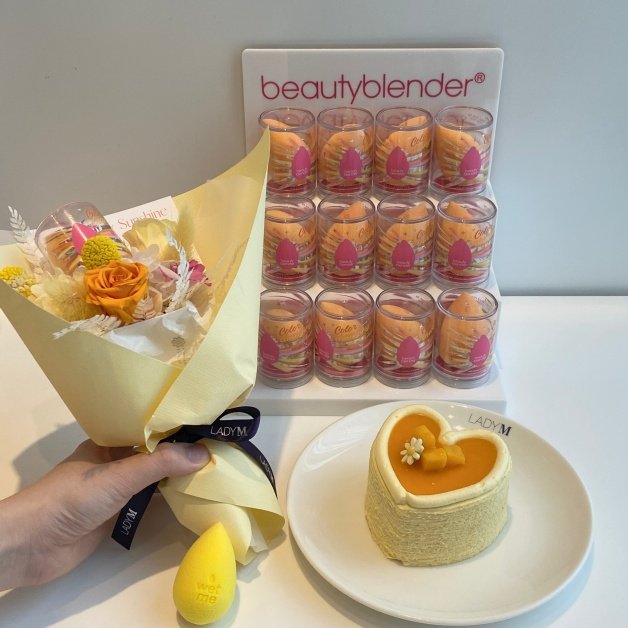 永恆戀夏組合內除了「心型芒果千層蛋糕」之外,主打的就是在美妝界深受明星好評不斷的「beautyblender原創美妝變色蛋」,受封為「底妝神器」,選用的即是2022春季閃耀登台的「艷陽」,以品牌獨家的溫感天然染色技術,再加上超柔軟材質和專利水激活技術,完美服貼妝容一次搞定!