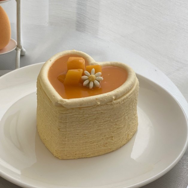 全球獨家販售的「芒果千層蛋糕」,由主廚專門為台灣所研發,千層間均稱地抹入酸香甜馥的「芒果卡士達」,最上方佐以巧克力小花綴飾,果香四溢的愛心芒果千層不僅吃起來濃冽多汁又果香四溢,妞妞們入口時還有盛夏獨有的濃情蜜意在舌尖綻放呢!