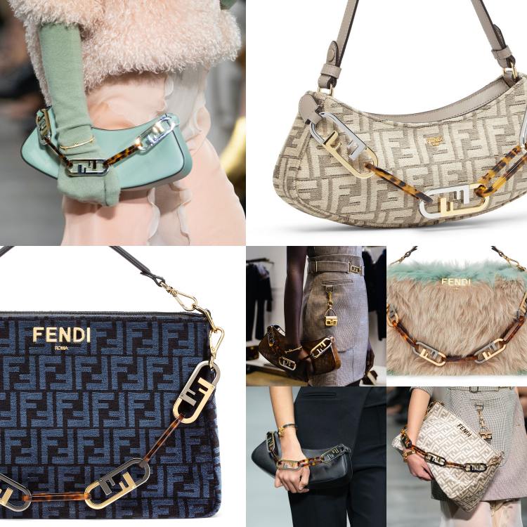 在這個系列的包款中,品牌一共推出兩種不同的包型分別為「O'Lock Swing」及「O'Lock Zip」,在近年來腋下包趨勢持續延燒,因此在「O'Lock Swing」這款包型上設計師便以弧形的線條呈現,再搭配上吸睛的鏈帶,讓款包變得年輕又時髦,而「O'Lock Zip」這個包型則以 Fendi 典雅內斂的風格為主軸,方正簡練的廓形,讓優雅的女孩能換上此系列包款。