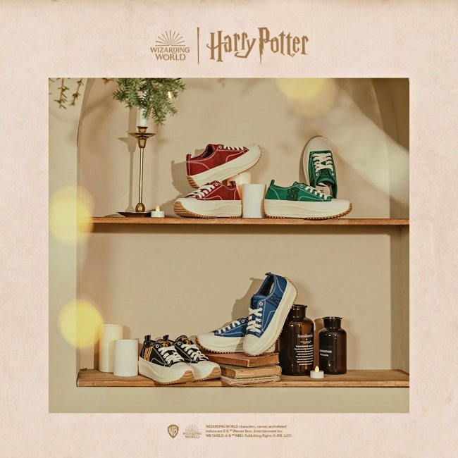 百搭小白鞋也能自帶魔力!這波聯名推出的小白鞋可不簡單,一樣以奶油白從鞋帶、鞋身延伸到鞋底,同時在鞋側大大裝飾學院的代表字母,同時用象徵色妝點,好搭卻不無聊,另外妞編輯也大推「四大學院厚底鞋」,穿一雙全紅葛萊分多鞋,馬上加滿無畏勇氣~