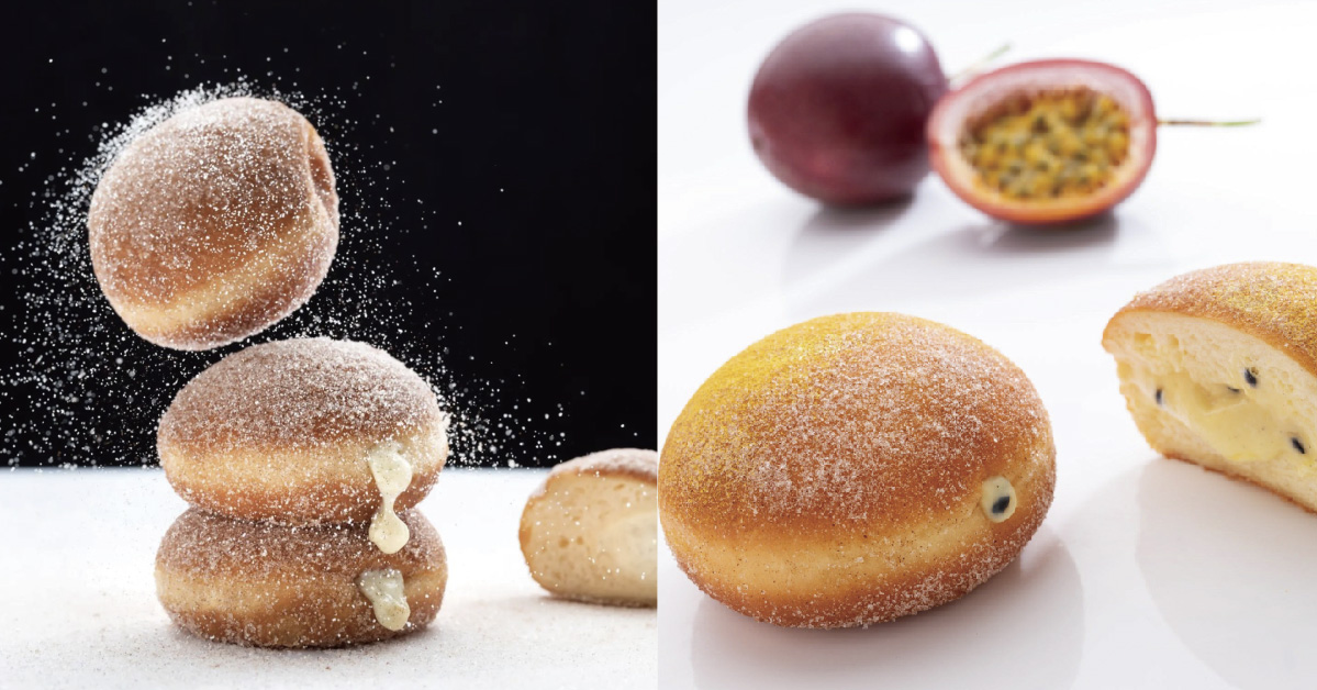 義式甜甜圈源自義大利托斯卡尼的國民甜點,不同於常見的甜甜圈中心有個小圓空心。烤製而成的義式甜甜圈口感比較接近海綿蛋糕,吃起來比較鬆軟、濕潤。台北文華東方酒店的文華餅房在甜甜圈內填入濃郁的奶霜內餡,除了經典卡士達口味,還有7月限定的百香果口味,一起來嚐嚐夏天的清爽滋味吧!