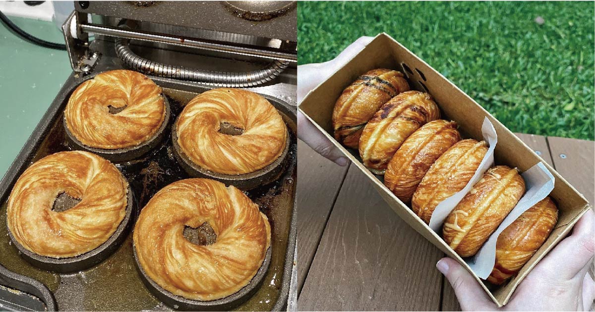 熱騰騰的現「烤」甜甜圈你吃過了嗎?經過都可以聞到濃濃的奶油香,香酥的麵糰就像奧地利的可頌麵包一樣充滿層次感!外圍沾附的砂糖經過烘烤後,形成了酥脆的焦糖。除了經典的原味、紅豆、芝麻口味,還有特別的鹹甜花生、海苔椒鹽口味,「鹹鹹圈」的滋味讓你一點也不膩口!
