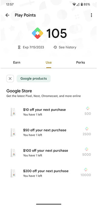 最新被發現的獎勵兌換測試與其他一些方法相比,實際上提供了非常不錯的兌換比率,與 Play 商店積分相比,回報率可以說是翻了一倍,儘管這可能會根據其他細節而有所不同,比如上面提到的會員等級,不過這些新的獎勵也有一些使用限制。這些優惠不能疊加累計使用,因此如果你換到一張 50 美元的優惠券與一張 10 美元的優惠券,在單一次購買中你只能使用一張,同時優惠券有使用期限,當你將優惠券兌換出來後必須在 30 天內用掉,過期則會失效。