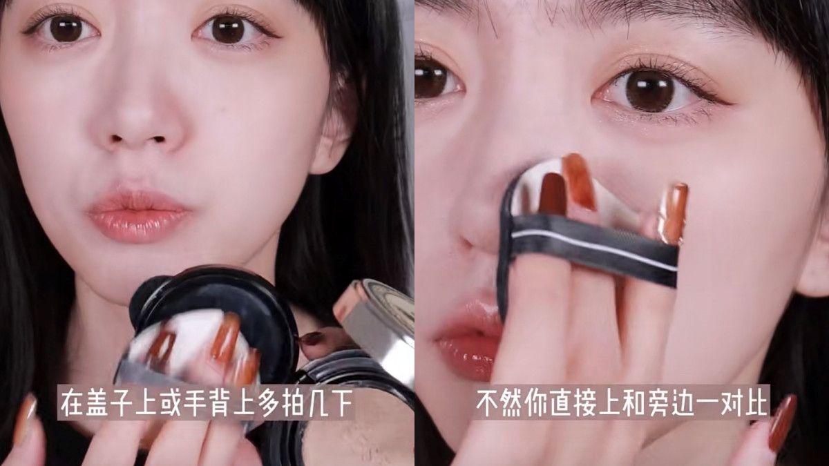 緊接著正式進入補妝環節,我們都知道氣墊粉餅是出門在外最棒的補妝小幫手,但常常補一補反而顯得妝感厚重易浮粉,問題就出在這。