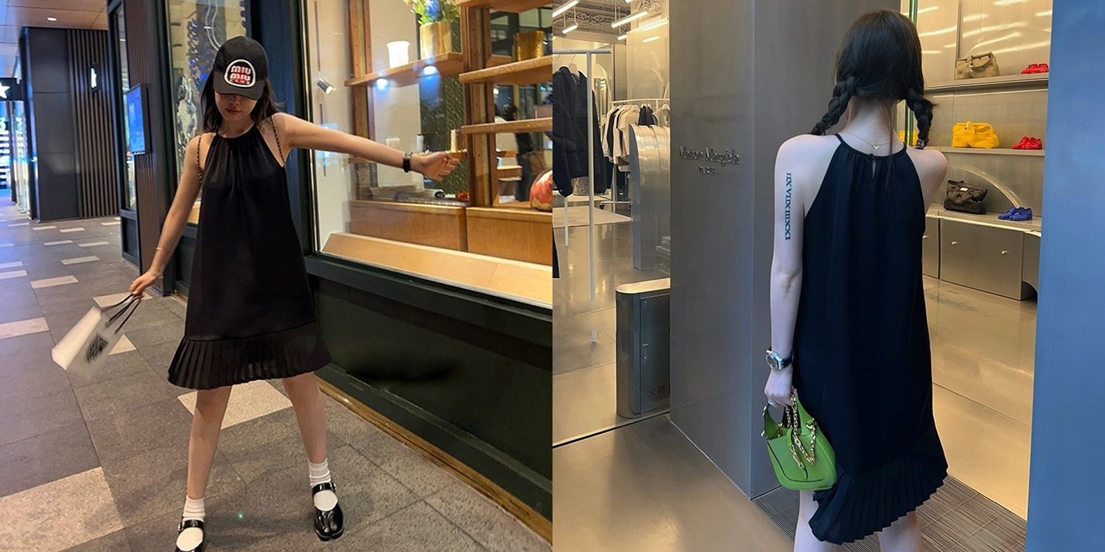 這件繞頸削肩連身洋裝超活潑,不管是誰穿上都可以自帶可愛光芒。整件洋裝以Aline 設計,穿起來顯瘦,另外搭配下擺的百摺設計,讓這件洋裝不會太無聊。雖然洋裝是比較沈穩的黑色,但因為設計很可愛,讓洋裝呈現的是活潑感。