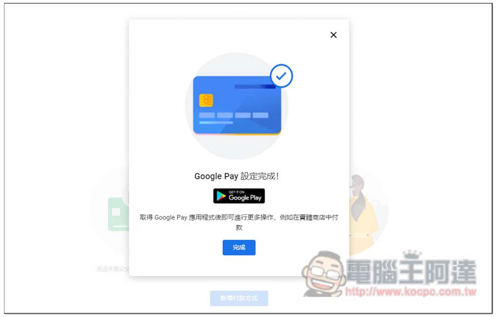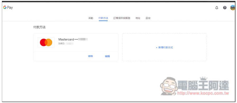 接著會進入 GPay 頁面,訂閱之前你需要先建立土耳其地址的付款方式,因此請按 "新增付款方式":
