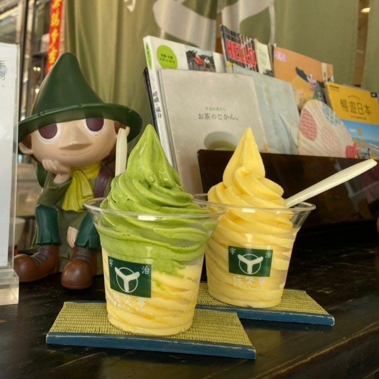 「宇治.玩笑亭」位於新興區尚義街上,簡易的木製餐車看起來非常日系,抹茶霜淇淋為常態口味,選用京都宇治抹茶製作,茶香十足。除了抹茶,每天都會提供另一個隨機驚喜口味,像是「情人果梅酒雪酪」、「愛文芒果雪酪」等。