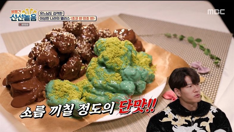 沒想到原本紅紅辣辣的炒年糕也可以跟薄荷巧克力做結合,綜藝節目《第六感》就曾介紹過「薄荷巧克力年糕」,綠色的外表超級衝擊,不過在節目中幾位主持人吃完之後,認為味道其實不錯,也許年糕本身可塑性強,因此加上薄荷巧克力意外很搭。
