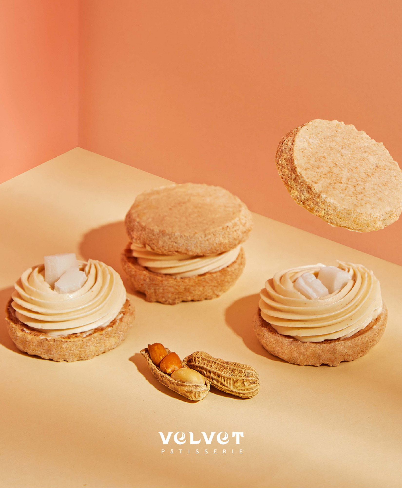 外酥內軟是法絨極具識別度的細緻表現,夾心使用70年老味道的新竹花生,製成滑順香醇花生醬內餡,配上口感十足的白玉麻糬,花生與麻糬的甜蜜滋味直奔心坎裡!