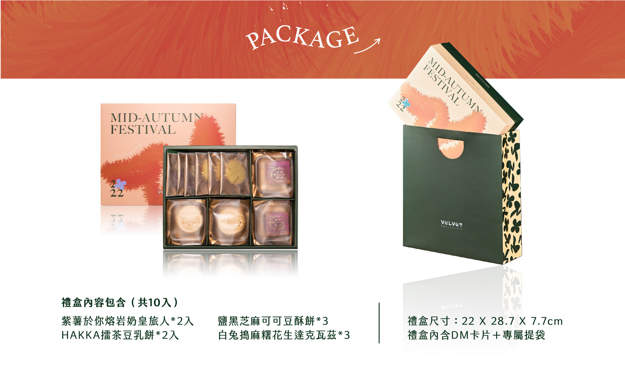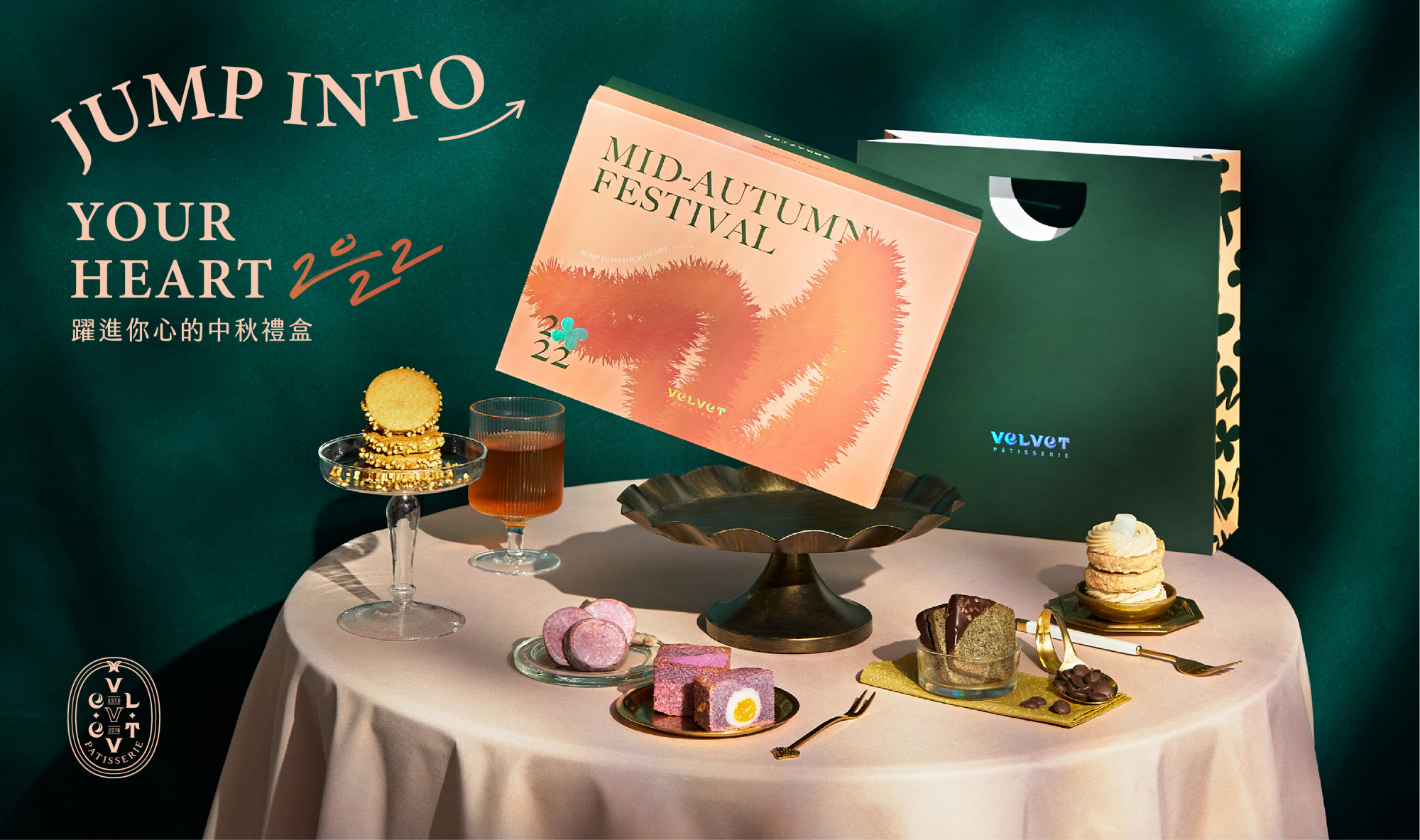 不想再吃月餅的SIS看過來!職人級法式甜點品牌,法絨法式手工甜點 Velvet Patisserie 要來打破傳統啦(歡呼)以歷史典故的月兔與桂花為發想,把毛茸茸的兔耳和桂花以插畫視覺呈現在包裝上,再用象徵美好與團圓的台灣傳統道地食材融入法式糕點,帶來親切溫暖的氛圍~