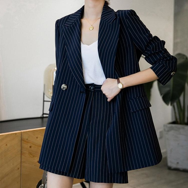 西裝短褲推薦八:藏青色時尚西裝短褲套裝