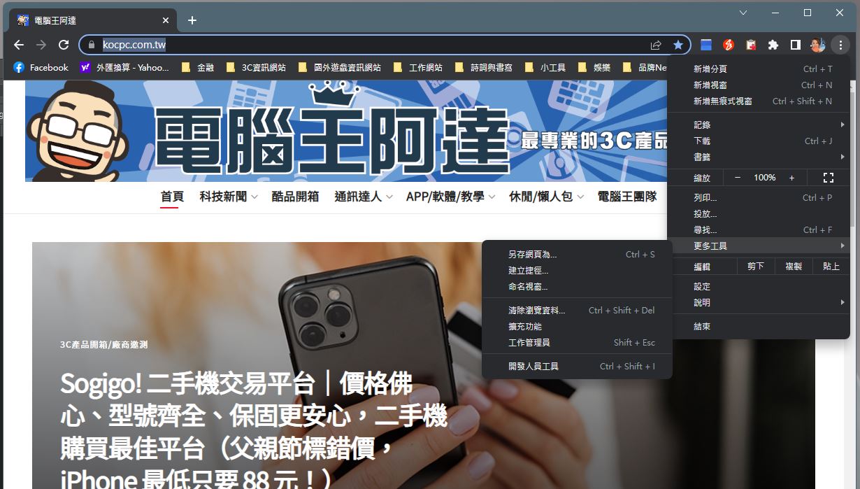 - 在 Chrome 瀏覽器中沒有很直接明瞭的安裝選項,你必須點擊右上角三點選單,然後選擇「更多工具」,並且點擊「建立捷徑...」。