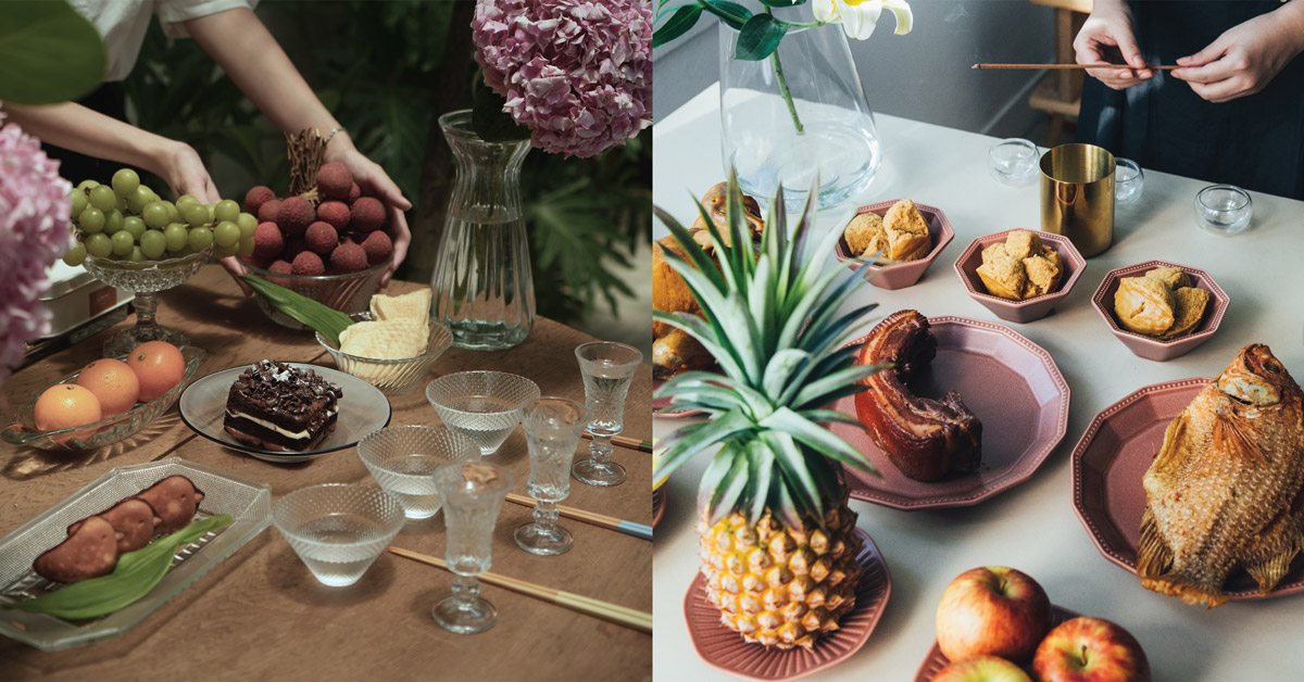 祭祀器皿不像供品有太多限制,只要避免使用白色的即可,有鑒於普渡在炎熱的8月展開,可選擇視覺上通透清涼的玻璃器皿盛裝水果,或是以日常風格延伸挑選;這次小北百貨、IKEA宜家家居新店店、無印良品、HOLA特力和樂也幫各位設計了4組範例,像是HOLA以多角型玫瑰紅碗盤增加莊重儀式感、IKEA以不同高度器皿呈現擺盤層次,小北百貨則提供各式各樣的民俗選品。