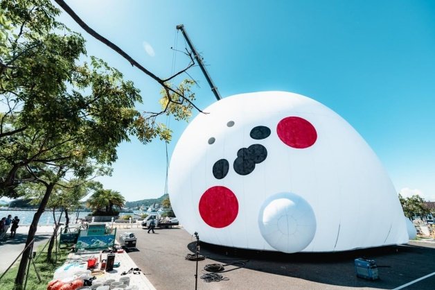 台灣LINE貼圖角色首次以「氣球裝置藝術」的形式登場,開場的巨型氣球裝置,就是慵懶又可愛(廢)的無所事事小海豹打頭陣,以超過13米、接近四層樓高的巨姿,在「高雄流行音樂中心」前水域躺躺,就是要讓海豹粉絲能夠零死角欣賞他的趴躺風姿!