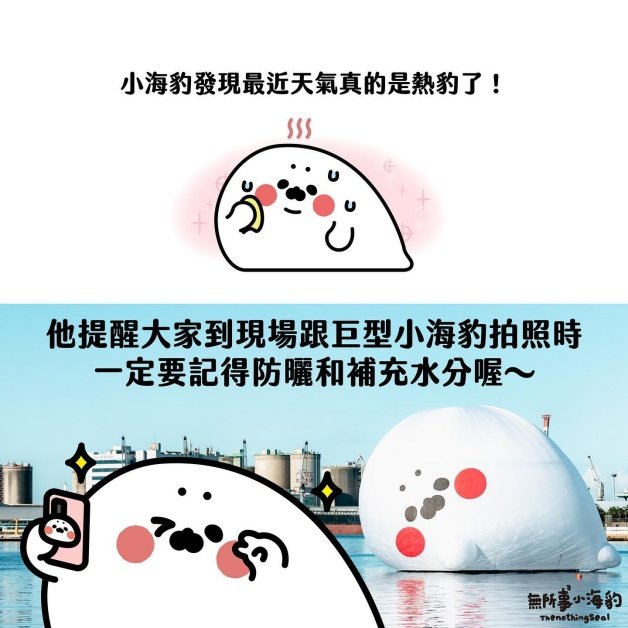 最後小海豹也提醒大家到現場跟巨型小海豹拍照時,一定要記得防曬和補充水分,除此之外,包含貓爪抓、塔仔不正經、ㄇㄚˊ幾兔、豆卡頻道和PP mini小小企鵝在內等6大貼圖角色也預計會偷偷出現在愛河,究竟下一棒是誰讓我們拭目以待,他們也將推出全球第一組「大港家鄉味」限定貼圖呢!