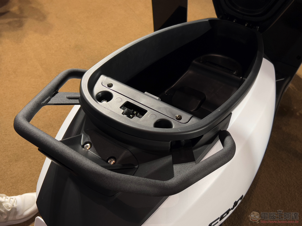 此外,融合宏佳騰油電靈魂的全新 CO-IN,不僅大燈等級也能有不遜色於高階黃牌車款 STR 的 Class D LED 大燈,更提供了 Keyless 的感應鑰匙規格,還擁有 20L 置物箱以及 2 合 1 USB 多功能掛鉤的設計。
