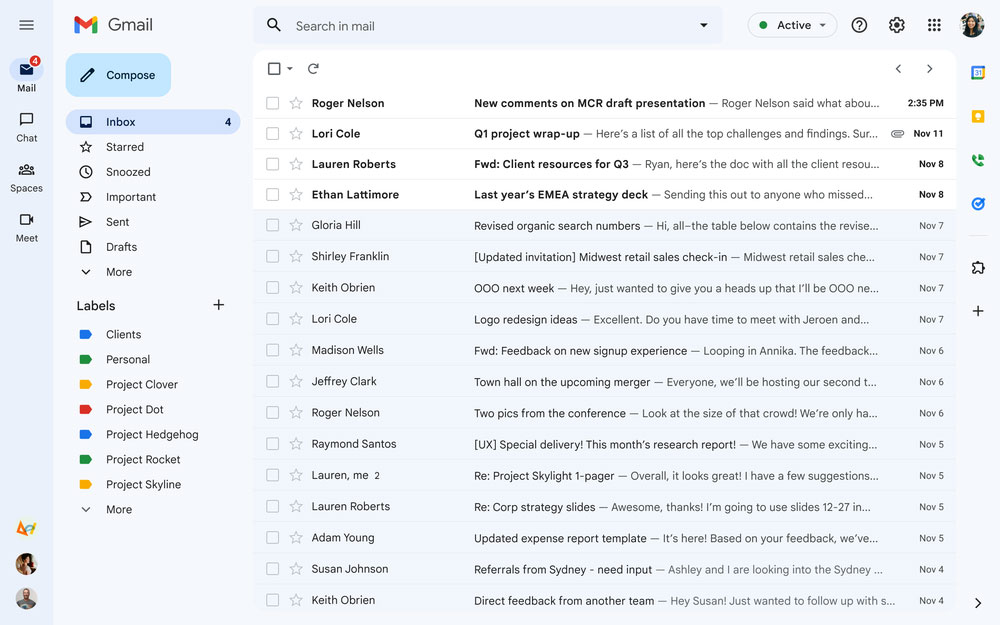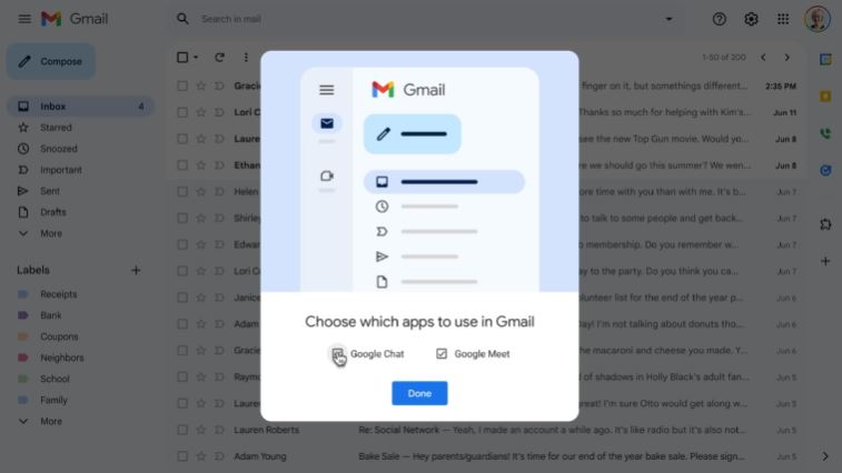 Gmail 獲得重大更新,現代化設計還整合了 Google Chat 和 Meet 介面