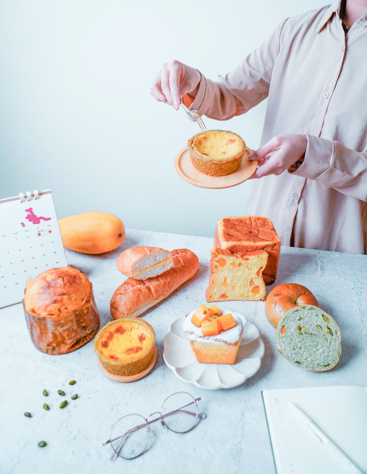 生吐司系列一直都是他們家的招牌,其中又以「芒到生77吐司」最具特色,口感鬆軟濕潤的生吐司,搭配香氣十足的愛文芒果乾與自製Q彈芒果粉粿,多重滋味席捲於舌尖上,另外「台灣風土鹽可頌」以具有代表性的台灣風土鹽製作而成,打造出馬卡龍色系的7款鹽可頌。而「梅引茶金」則是店內的人氣麵包,以新竹東方美人茶取代小葉紅茶,增加比例做成茶香液種,再加入湯種,讓歐式麵糰即便不加糖、不加奶油,也能保持柔軟的質地,入口茶香和梅子酸,讓人齒頰生津。
