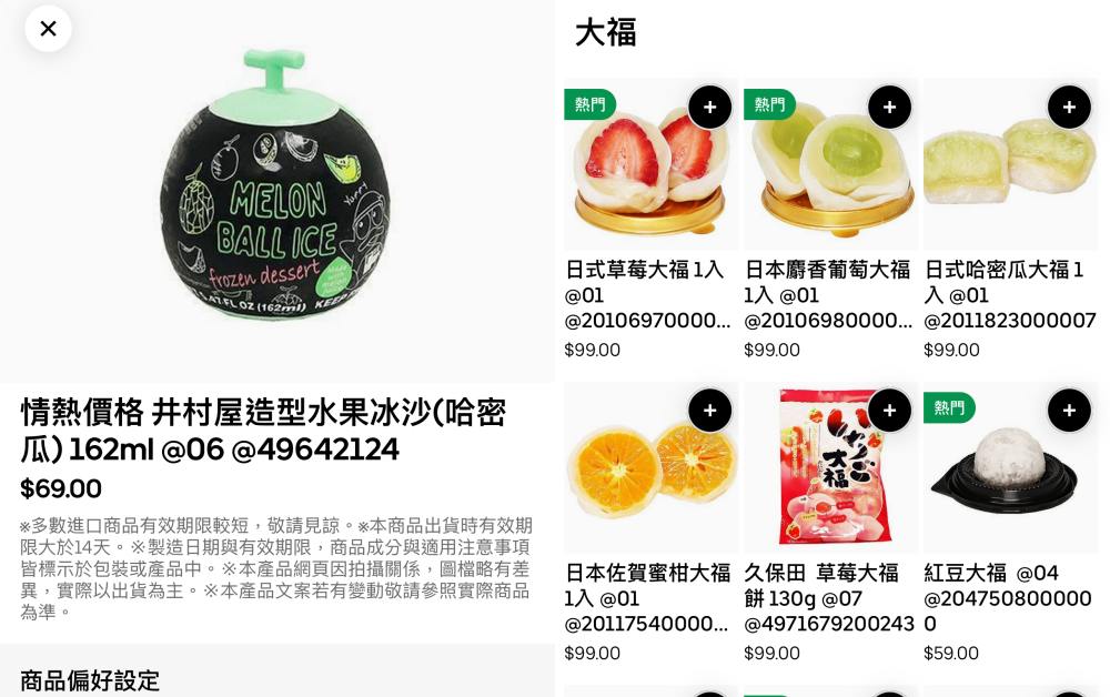怎麼能錯過佔據你第二個胃的美味甜點呢?近期在大特價的「幾村屋造型水果冰沙」超級欠買,不只有哈密瓜口味還有水蜜桃口味,小孩子才做選擇!兩個都要!還有必買的「水果大福」也很可口,包入新鮮水果既消暑又能有飽足感,想吃草莓、麝香葡萄、哈密瓜還是橘子呢?「日本黑芝麻奶酪」也很誘人!濃濃的芝麻香氣配上奶香味十足的奶酪,真的好難抗拒!