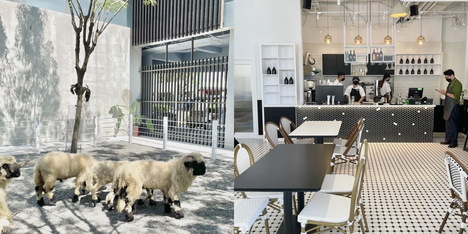 除了找來可愛的瓦萊黑鼻羊坐鎮外,黑RURU CAFE的裝潢也是網美等級的好拍,戶外區以簡約又現代的清水模設計為主,咖啡廳本體除了設計採光良好的落地窗玻璃屋外,室內更以瓦萊黑鼻羊的全身黑白配色作為發想,整間店的裝潢都以時尚的黑白元素為主軸,另外,在入口處也規劃販售麵包與冰淇淋,讓喜愛的粉絲可以打包帶回家。