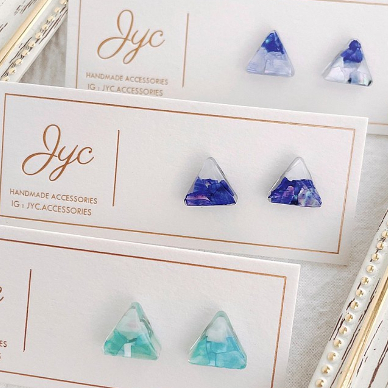 天然染色貝殼製作而成,清涼的藍綠色調,看著好想去海邊!簡約的設計,怎麼搭配都很好看,有做耳針款跟耳夾款。穿件素T,佩戴上可愛的富士山峰耳環,超有日本的fu!小巧可愛的富士山耳環,當作日常的穿搭小配件,完全沒有問題。