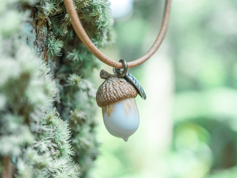 這不是在冰原歷險記裡面有出現的松果嗎?超Q的橡果項鍊,這條不只是樹脂項鍊,還是精油項鍊呦!將精油注入木頭上的小孔或是塗在木頭表面,讓精油滲透散發香氣,香香的讓人心情愉悅。純手工製作的面白樹脂栓木橡果,每一個都有些微的不一樣,這就是手作項鍊迷人之處。喜歡松果的人,可以好好逛逛這間,還有很多不同的松果項鍊款式呢!
