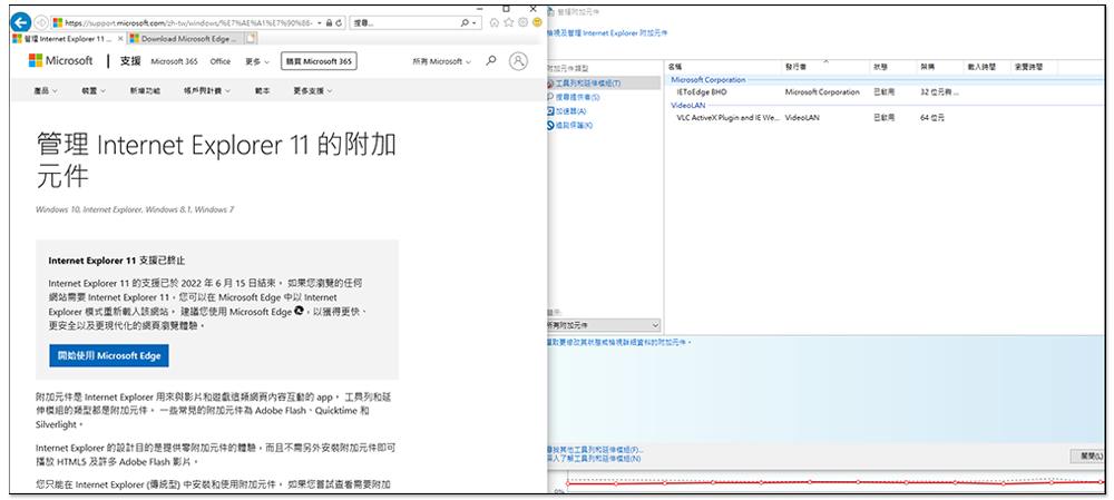 - 按底部的「深入了解工具列和延伸模組」功能,就會打開 Internet Explorer 瀏覽器了