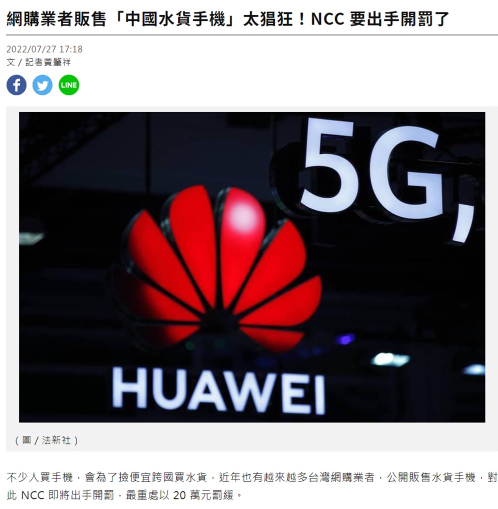報載NCC將針對網路銷售水貨手機加以強力取締,最重開罰20萬元! 不過,NCC此次宣示將在網路販售取締的標的是【未通過審驗合格的電信管制射頻器材】,中國水貨手機只是其中一項。由於各國手機頻段不一,台灣民眾購買水貨手機並不多,真正在網路氾濫銷售的,其實是藍牙耳機、藍牙喇叭、無線麥克風…等等第二級電信管制管制射頻器材。