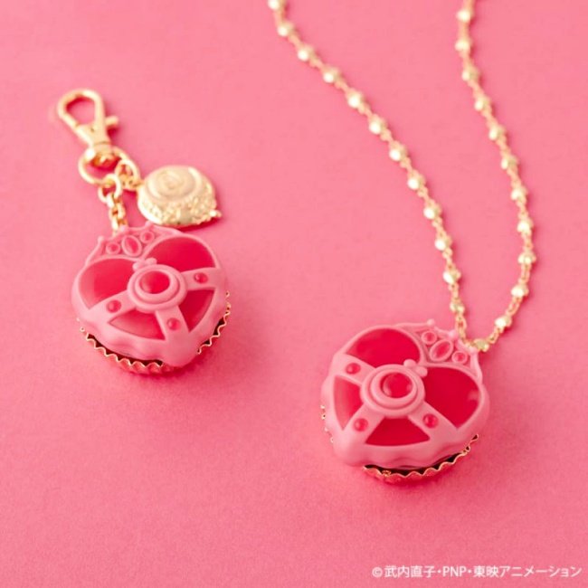 主角月野兔變身成水手月亮、月光仙子時的必備變身器,變得超可口!Q-pot.把月亮螺旋愛心鏡盒變身器(S代)搖身一變,成為酸酸甜甜的草莓巧克力,製作成項鍊、吊飾讓你配戴即可變身。