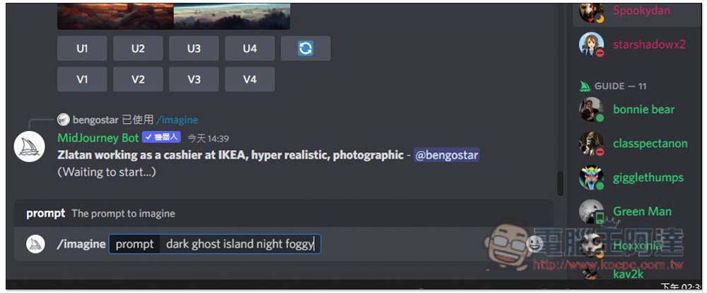 進入之後,你會看到很多人都在嘗試 AI 自動運算圖片,因此你也可以先看其他人是怎麼使用、輸入什麼關鍵字,頻道內訊息會一直被洗版,更新很快: