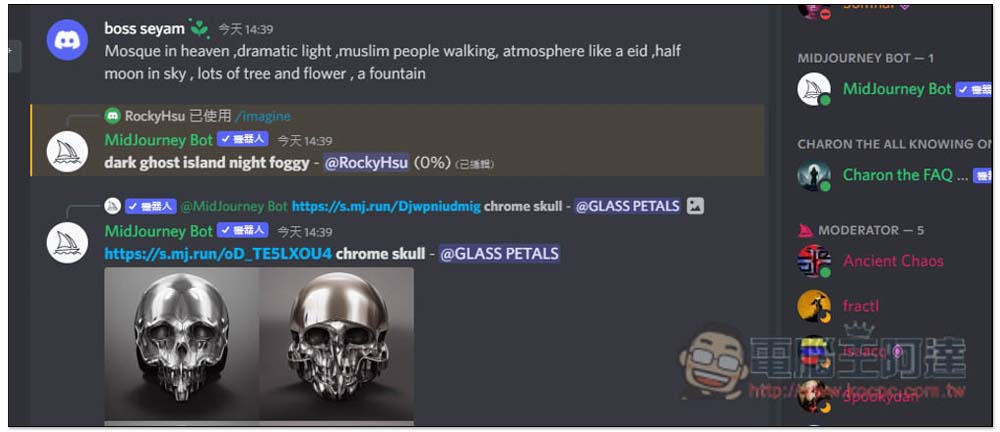 過去 Midjourney 似乎需要邀請碼才能使用,而我稍早測試只要加入他們的 Discord 頻道,就能直接試用,目前還是 Beta 測試版本,但成果已經非常不錯。