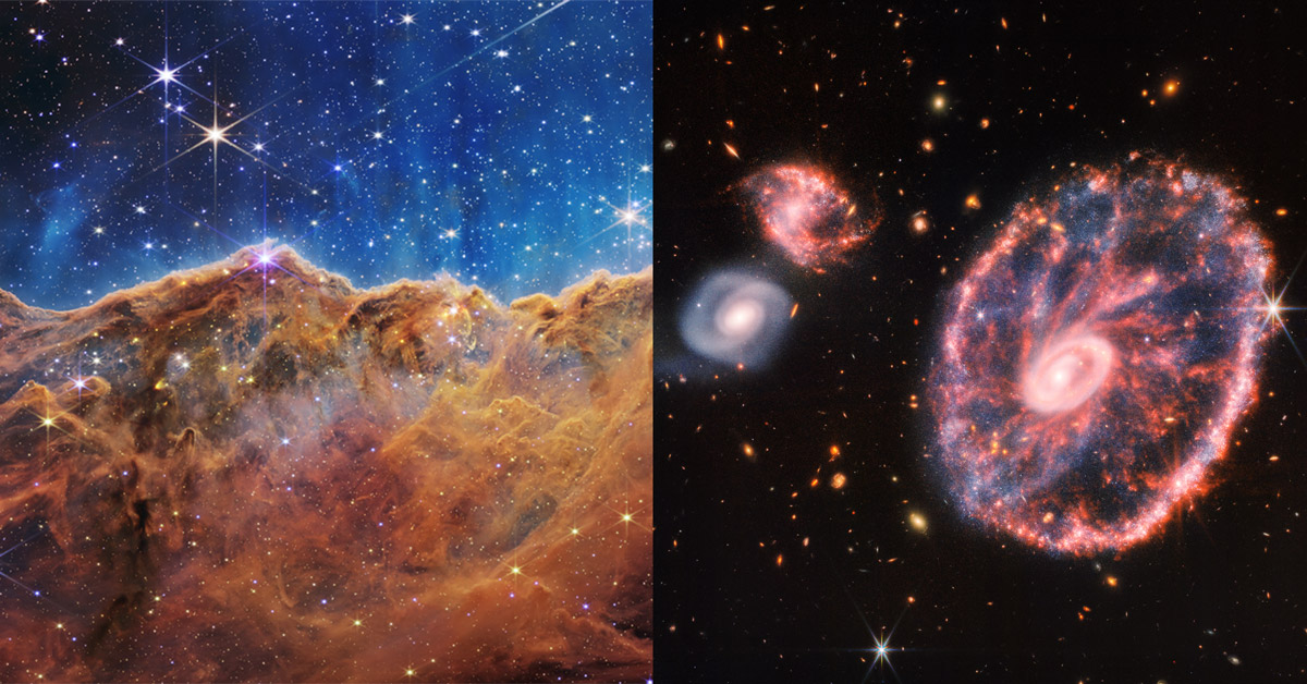 隔天NASA再度釋出一系列照片,被攝者為史蒂芬五重星系群圖像(Stephan's Quintet),包含南環狀星雲(Southern Ring)、史蒂芬五重星系(Stephan’s Quintet)、船底座星雲(Carina Nebula),五個星系距離相近且互相拉扯著彼此的重力,最終則會合併,影像捕捉到氣體與塵埃積雲交織的迷濛色彩、又從中透出紅金色光暈,視覺上炫目吸睛。