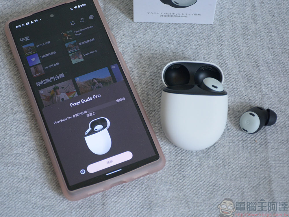 Pixel Buds Pro 有一個對於多裝置使用者很方便的功能,它可以在多裝置之間自動切換音訊來源。像筆者的習慣,在家時我會用 Pixel 手機聽音樂或是用平板看影片,主要聯絡用的手機是 iPhone,當我聽到一半有來電時,可以自動快速切換過去,不用再動手去藍牙選單裡面操作(當然你的設備要有配對過),在 Android、iOS、平板、筆電都可支援 。