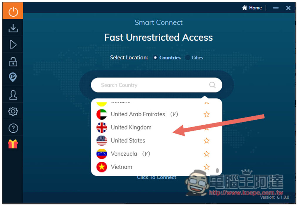 Ivacy 很大的優勢在伺服器網路超大,提供多達 100+ 個國家 / 地區選擇,伺服器總數量超過 5,700 台,無論你人在哪一個國家,附近幾乎都有伺服器可連。而伺服器這麼多,碰到尖峰時刻如果覺得當前伺服器速度有點慢時,可以立刻斷開,改連其他速度更快的伺服器,使用上更有彈性。