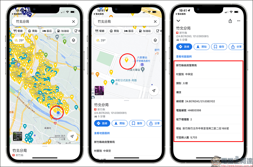 接著就能在行動裝置端利用 App 前往開啟政府分享的全國防空避難處所地圖,一樣可以顯示完整的避難資訊。
