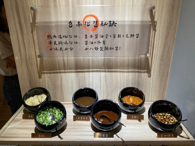 宣牛在醬料檯面上也貼心附上「台南醬料秘訣」,提供兩種沾醬法,其一為「經典道地沾法」台南醬油膏+薑絲+豆瓣醬;其二為「清爽提味沾法」醬油+洋蔥,如果想要讓口味更加分的話,可以再添加「特製辣椒醬」!