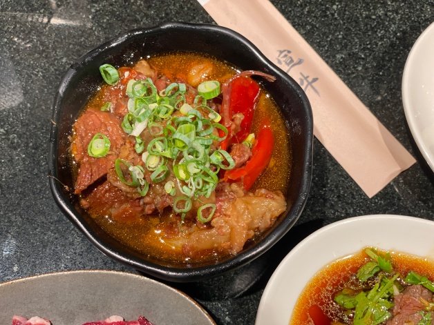 廣受好評的「香菜辣牛肉」,據說是連不吃香菜的人也會上癮的佳餚,軟嫩適中的溫體牛咀嚼帶有甜味,搭配清脆香菜和秘製醬汁,與牛肉的相襯映,香氣十足,讓人停不下來,一口接一口!