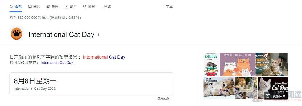 原文標題:8月8日國際貓節日 Google 搜尋加入貓咪彩蛋