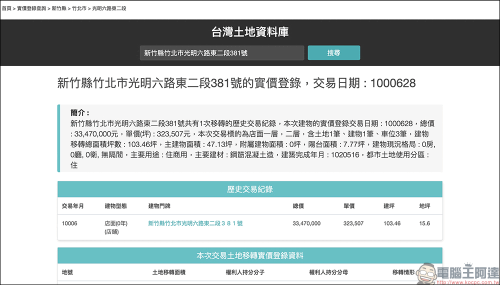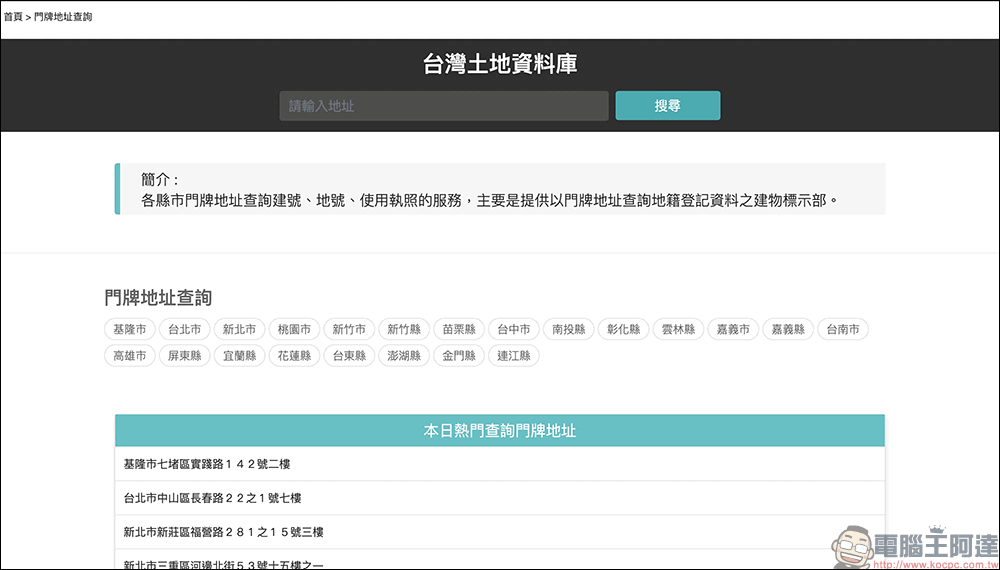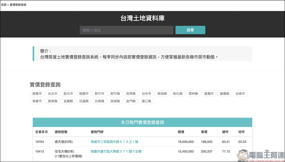台灣土地資料庫:一個可以方便查詢台灣土地地號、建號、實價登錄、建築執照的查詢系統