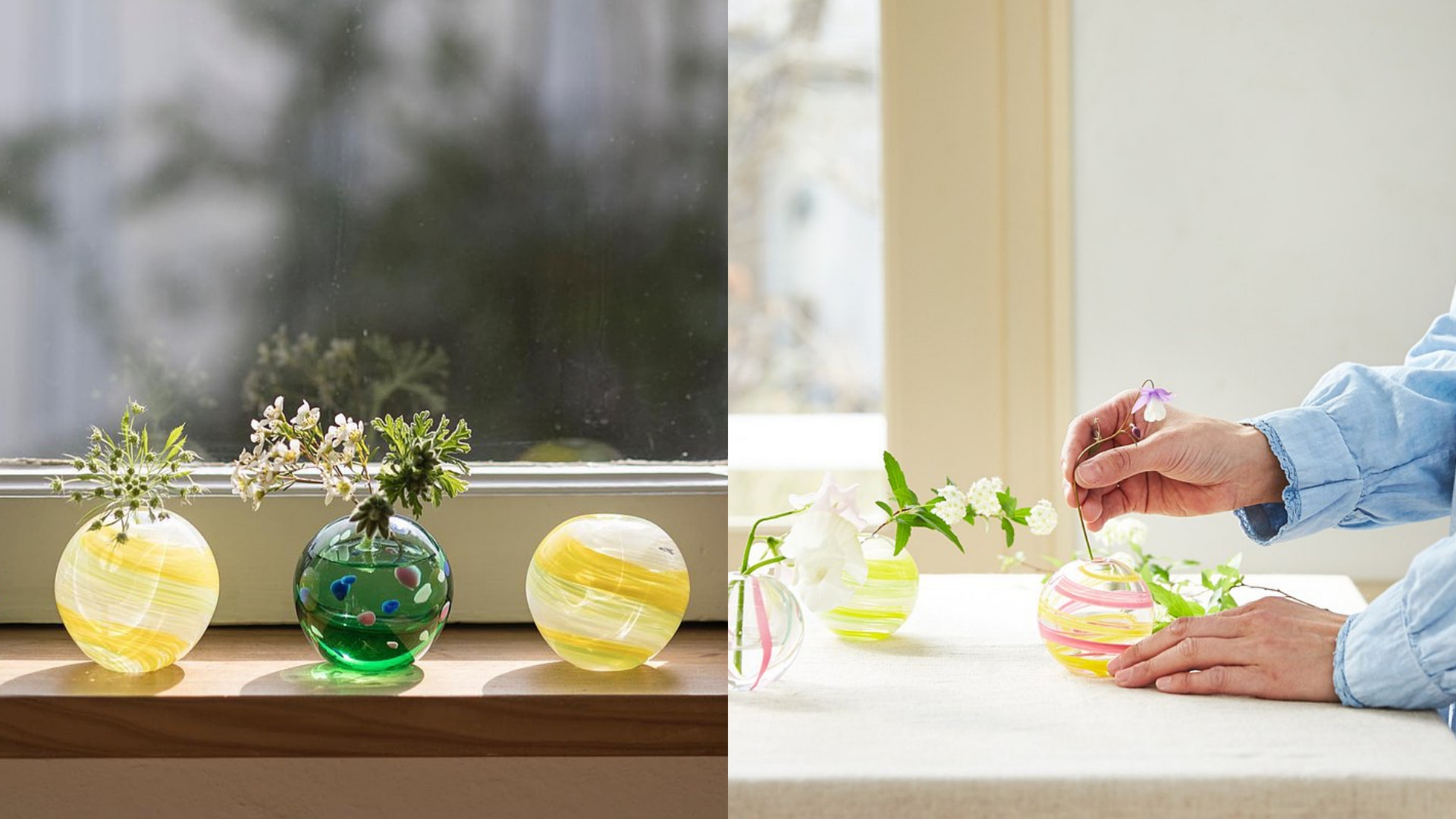 以四季為題,日本玻璃品牌津輕的彩手鞠系列,將自然風景變換之美留存於玻璃之上,瓶口圓潤細緻,適用於單支小型花束,也能當擴香瓶使用。底部扁平穩固,獨到的色彩彷彿流動在華麗的小花瓶上,除了插花之用,也適合擺飾欣賞。