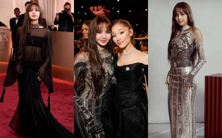 Lisa金球獎登場直接變全場焦點!黑色性感薄紗禮服太犯規…銀色亮片禮服同框亞莉安娜、畫面太夢幻