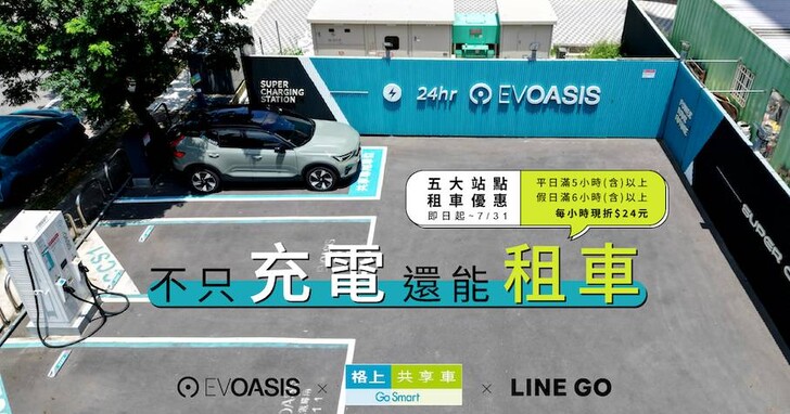 為讓更多人輕鬆體驗電動車生活,充電網 EVOASIS 與格上租車合作,推出全台首個「充電站即租車點」服務。為讓更多人輕鬆體驗電動車生活,充電網 EVOASIS 與格上租車合作,推出全台首個「充電站即租車點」服務。從即日起,使用者可透過 LINE GO 或格上 Go Smart App 預約並取還 Volvo 純電休旅 XC40,六個站點同步啟用,包括台北台大停車場、新北三重三信超級綠洲、桃園...
