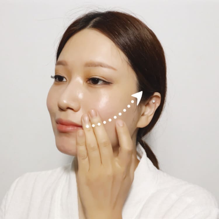 重複做8次,從嘴角仔細推至髮際線的拉提動作。
