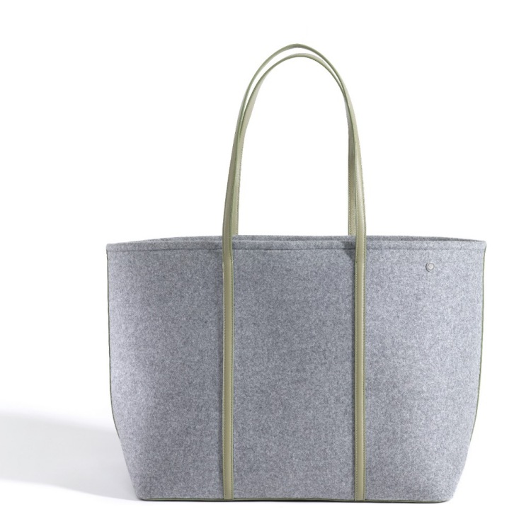 以頂級喀什米爾羊毛起家的 Loro Piana,近期也積極的投入包袋市場,這款托特包延續其品牌工藝,內斂的淺灰色搭上酪梨綠的肩帶設計,透過色彩的組合,讓這款包擁有年輕的氣息。(商品售價:NTD83,500)