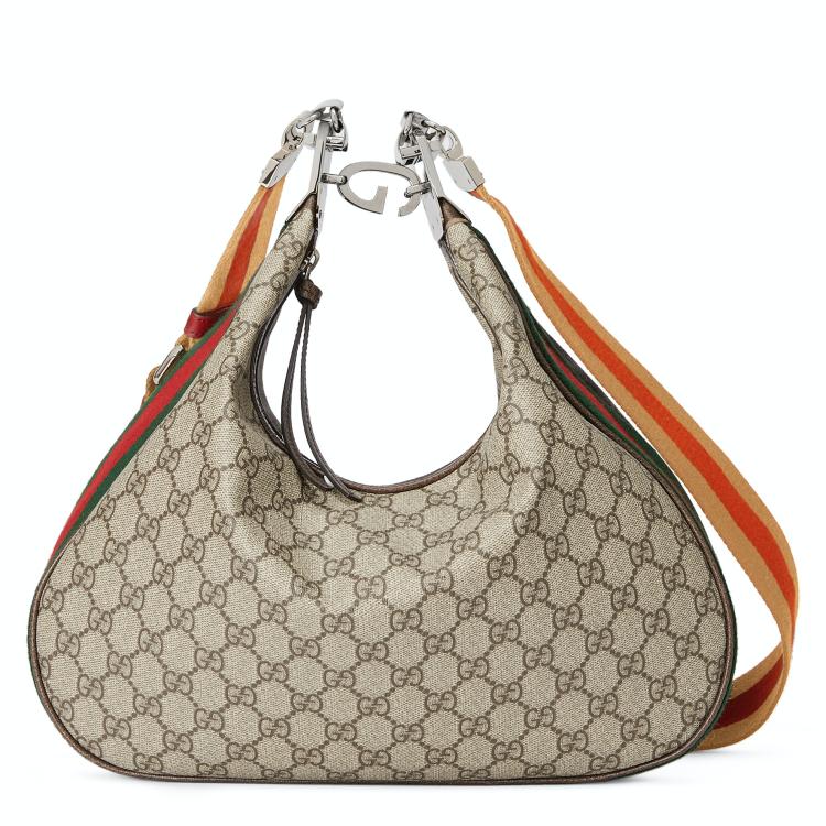 「Attache」身為 Gucci 今年度的重點包款,不只要扛下時尚擔當的責任,還要成為女人生活上每個時刻的好夥伴!該包款透過扣環調整能一秒改變外型的設計,讓它肩背、斜跨手拎都 OK!搭配上中型尺寸的容量,更能滿足在乎實用性的女孩。(商品售價:NTD90,500)