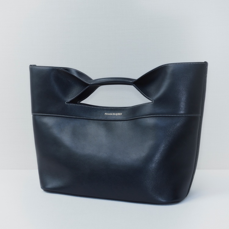 Alexander McQueen 不只服裝的剪裁很有一套,在包款的廓形上也很有自己的想法!例如這款看似簡單的方正提包,透過提把上的接縫造型,讓該包款擁有如雕塑般的幾何廓形。(價格店洽)