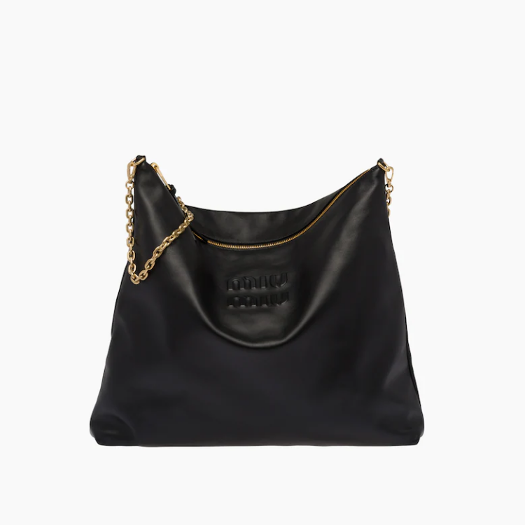 比起過去用可愛的外型抓人眼球的設計,Miu Miu 這款肩背包以簡單的金色鏈帶及黑色的方正包型為設計,無季節性的特性,讓這款包能陪伴妳每一天。(商品售價:NTD78,000)