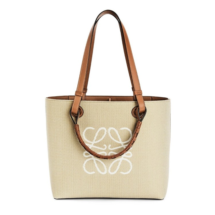 總能自帶文青感的 Loewe,在這款包袋設計上運用細緻的棉麻面料呈現,再搭配上品牌 Logo 的刺繡,簡簡單單就呈現出典雅氣息,搭配上焦糖色皮革的內裡,以及兩種不同長短的提把,讓這款包擁有更多的使用方式。(商品售價:NTD72,000)